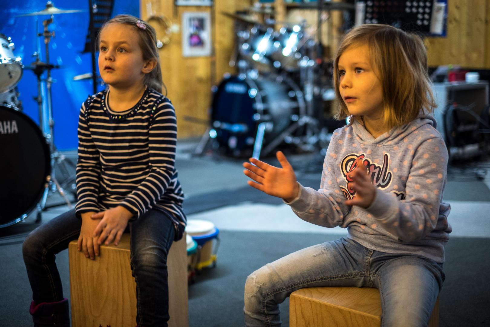 In einer kleinen Gruppen von maximal 5 Kindern sammeln die Kleinen ihre ersten Erfahrungen in Rhythmik, Groove, Musik hören, Singen und dazu Spielen.